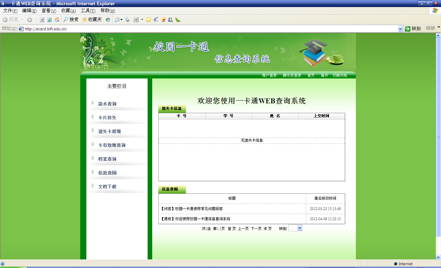 7.一卡通信息查询系统 (http://ecard.bift.edu.cn)